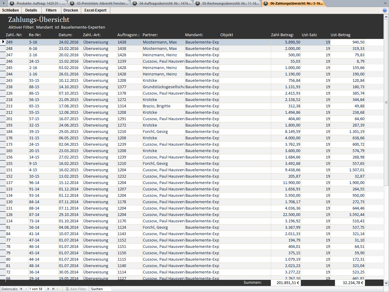• Belege (Angebote, Auftragsbestätigungen, Rechnungen, etc.)